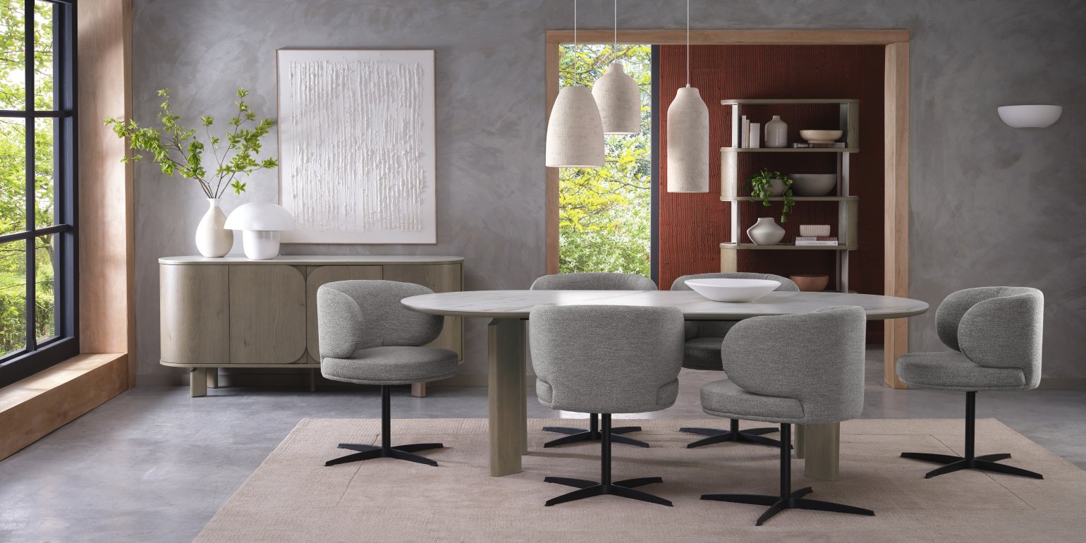 For instance, our Plyback chairs bring that idea to life. From Astra’s exposed oak frames to Rosen’s upholstered designs, each piece is shaped for comfort and defined by its curved supportive back. The combination of smooth lines and natural materials makes them a versatile choice. From textured boucle and soft velvets to woven fabrics and smooth bonded leather, every piece is crafted to bring warmth and balance to your home.